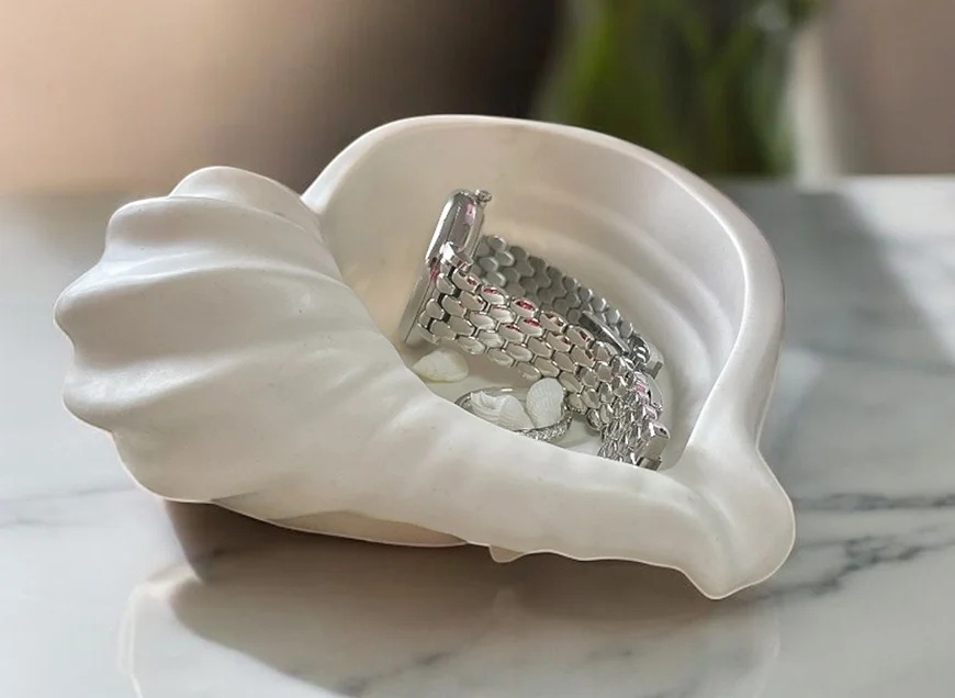 Koristi je za odlaganje nakita, ključeva, sušenog cveća ili kao samostalan ukras, njen oblik školjke i nežna tekstura čine je neodoljivo privlačnom. Dostupna je u boji i završnici po tvojoj želji: glatka, sa dodatkom perlejnog efekta ili blago teksturirana.